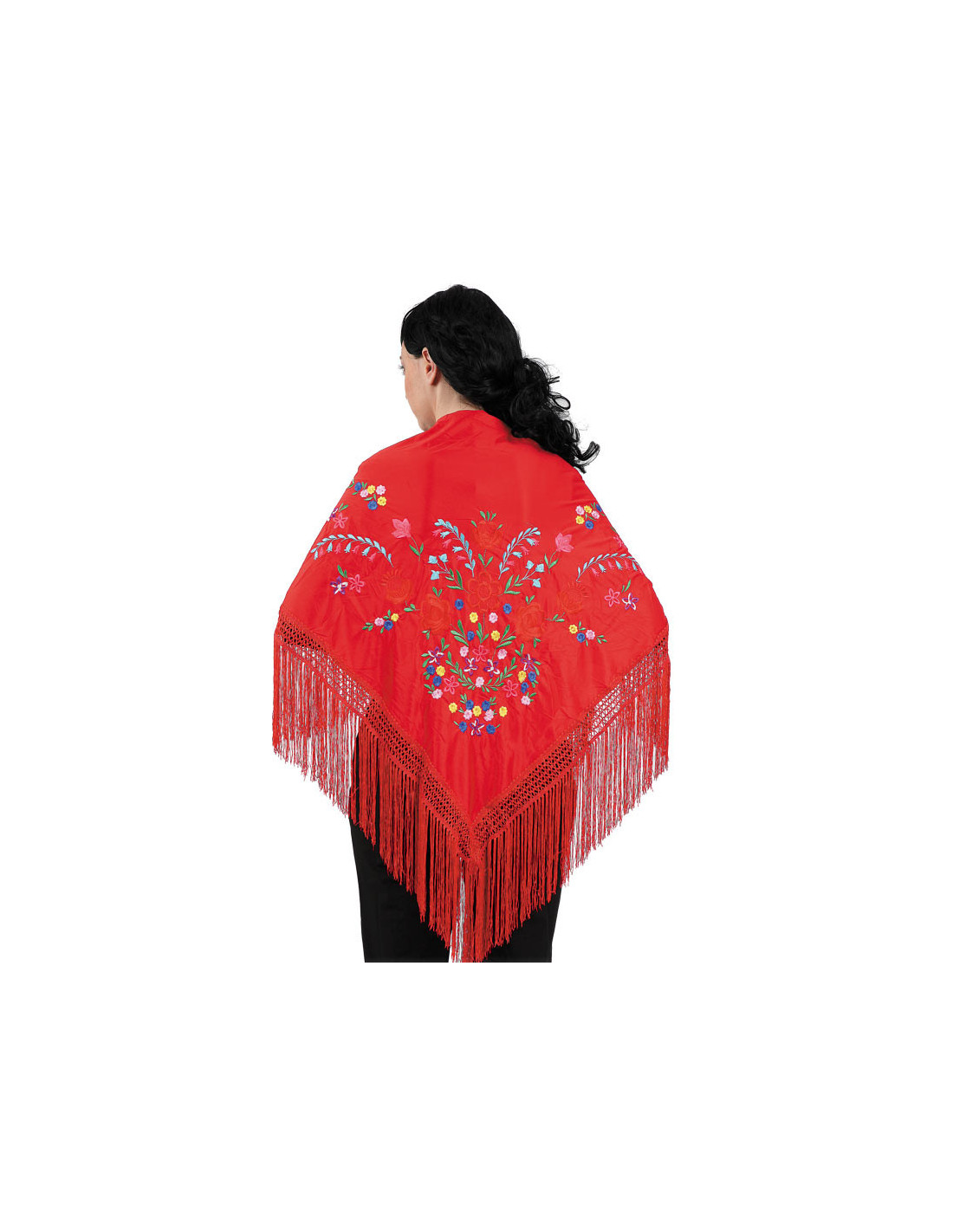 Mantón en diversos colores bordado y fleco largo