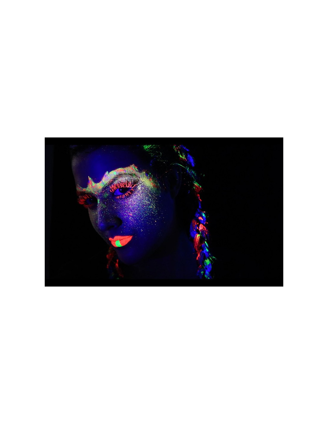 Maquillaje Amarillo Ultravioleta con gran intensidad, brillo y espectacularidad. Son colores fluorescentes bajo la luz negra y vibrantes en luz natural.