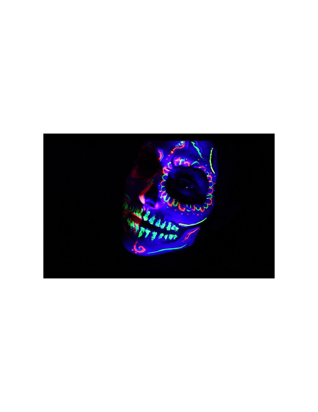Maquillaje Azul Ultravioleta con gran intensidad, brillo y espectacularidad. Son colores fluorescentes bajo la luz negra y vibrantes en luz natural.