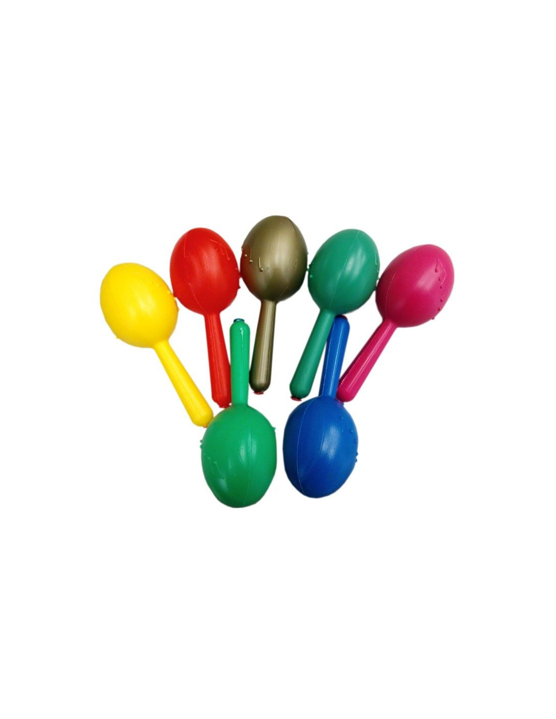 Dale ritmo a tu disfraz con estas maracas para disfraz de rumbero. Incluye maracas fabricadas de plástico, en diferentes colores surtidos. Se venden por unidad. Longitud 14cm y 18cm de diámetro.