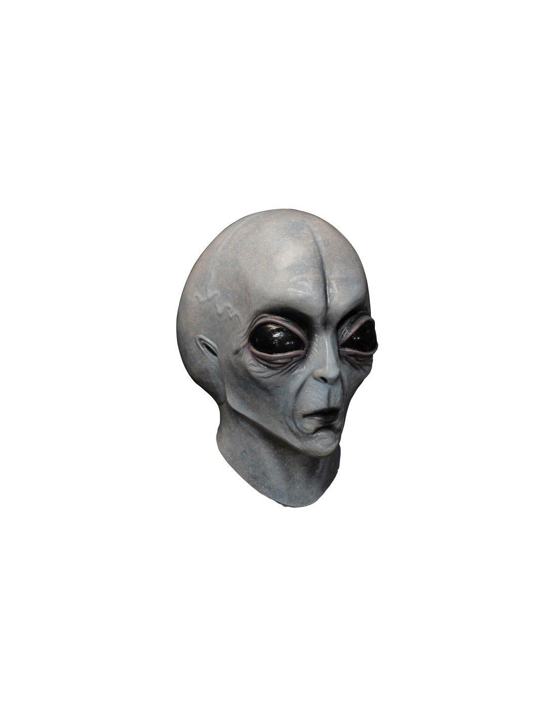 Realista máscara de alien área 51 fabricada en látex de gran calidad, en color gris y con los ojos negros saltones.