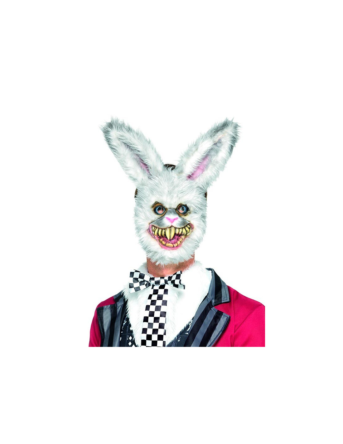 Máscara de conejo diabólico para Halloween con el que asustar a niños y mayores. Muestra tus peludas orejitas para atraer a los peques y acaba pegándoles un buen susto.