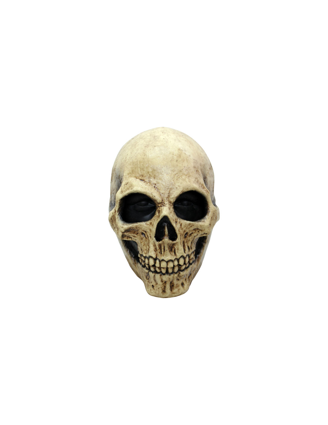 Máscara de cráneo fabricada en látex de gran calidad con aspecto envejecido.
