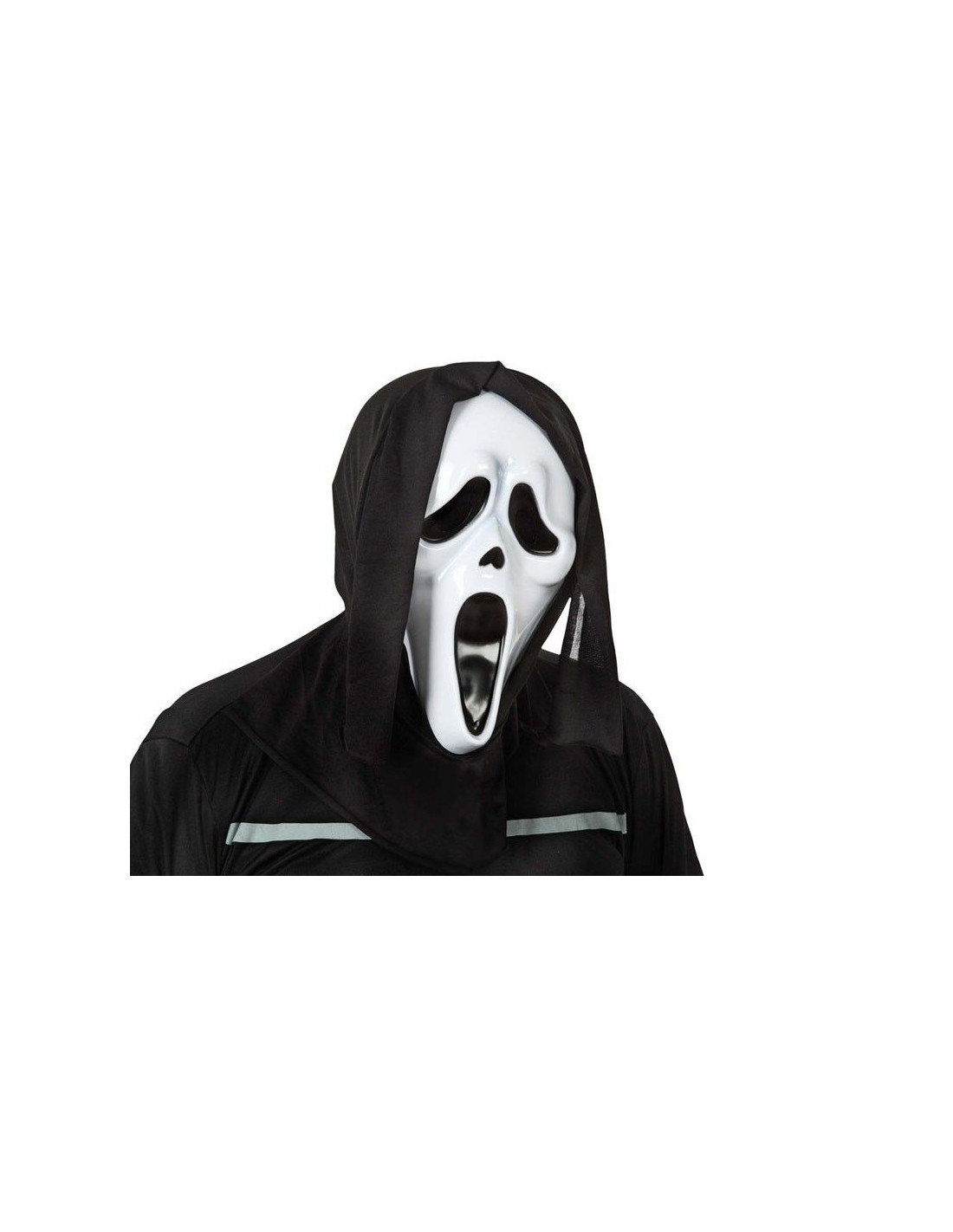 "Nunca debes de decir "¿Quién anda ahí?" ¿No ves películas de terror? Es un deseo de muerte..." Haz tu llamada al miedo más terrorífica con esta máscara de Scream. Incluye máscara . No incluye capucha. Las dimensiones de la máscara son de 41x24cm.