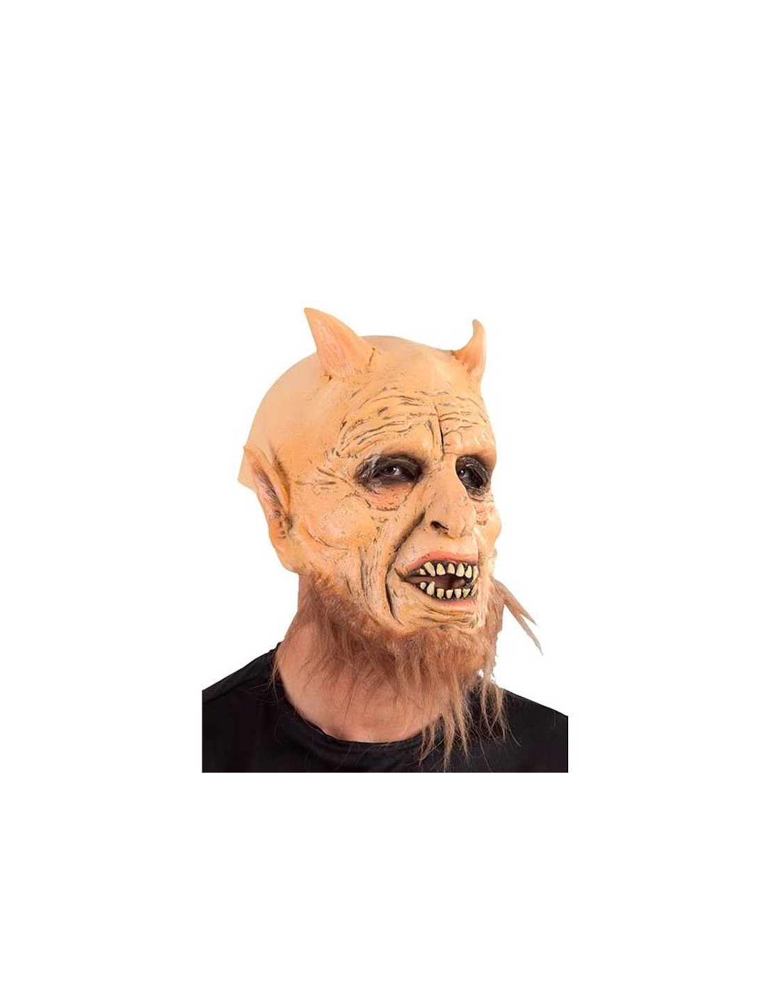 Máscara Demonio Barbudo de látex con dos pequeños cuernos en la parte superior, orejas y una dentadura con colmillos que que asustará al más valiente.