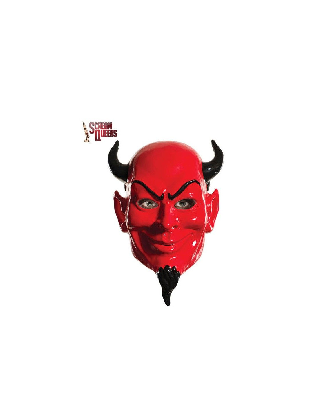 Máscara Diablo Scream Queens fabricada de plástico duro idéntica al personaje de la comedia estadounidense, con su m´titia perilla, cejas largas arquedas y dos cuernos negros. Producto con licencia oficial.
