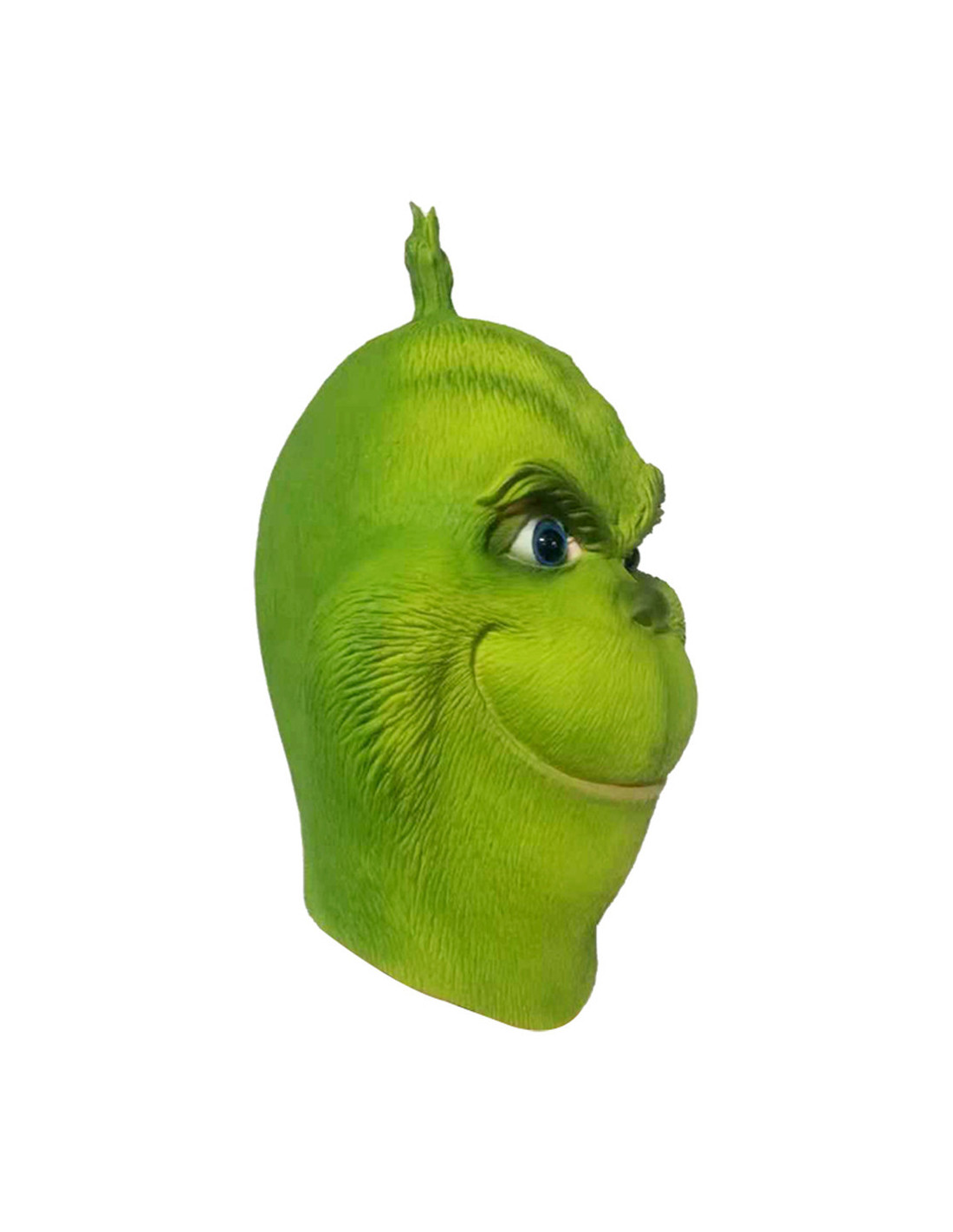 Máscara El Grinch de látex con abertura en los ojos para ver cómodamente.