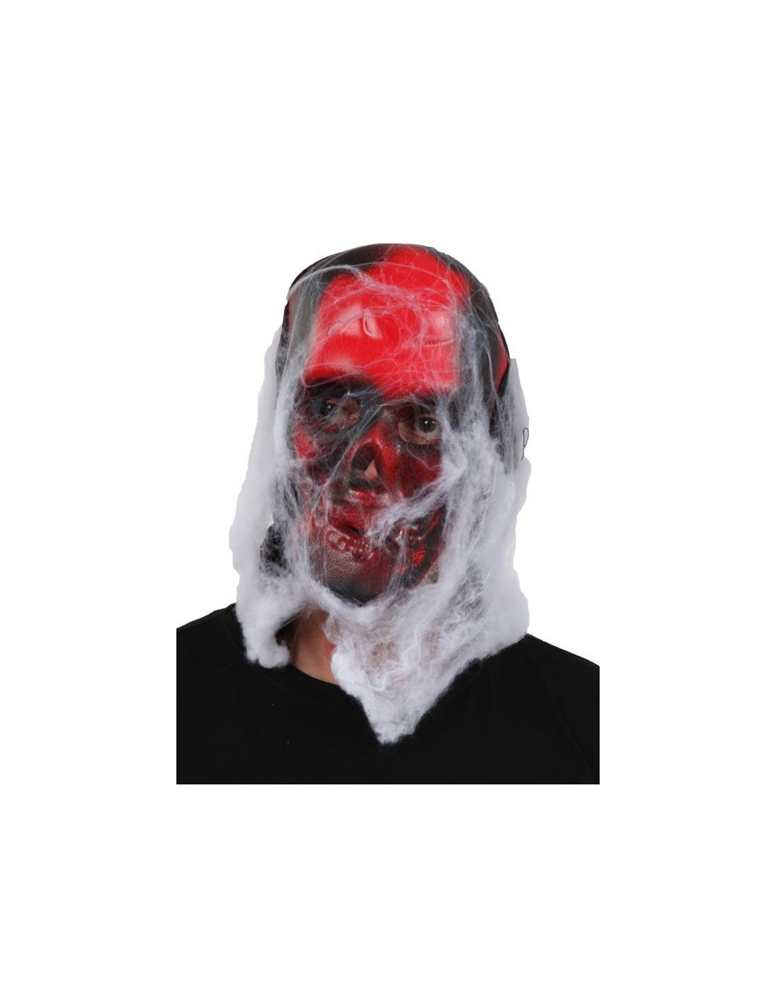 Máscara de esqueleto con goma eva y tela de araña para complementar tu terrorífico disfraz de Halloween.
