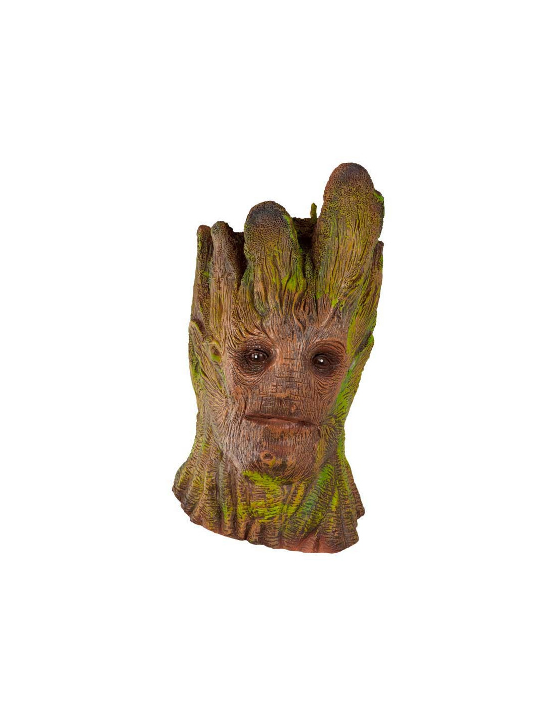 Conviértete en uno de los personajes más admirados de Guardianes de la Galaxia con esta máscara de Groot. Fabricada de látex, tiene todos los detalles del personaje de Marvel.