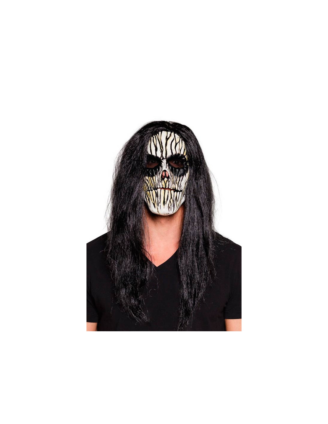 Máscara hechicero Vudú que incluye una máscara de látex con pelo.