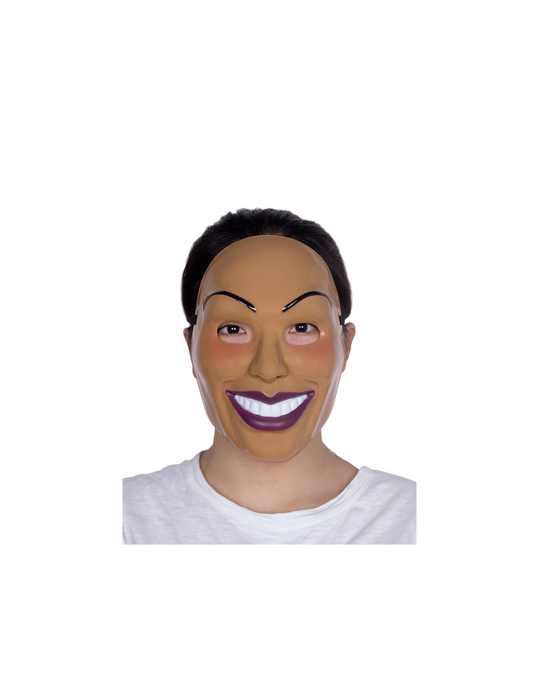 Máscara La Purga mujer de plástico que mide 21cm de alto por 15,5cm de ancho.