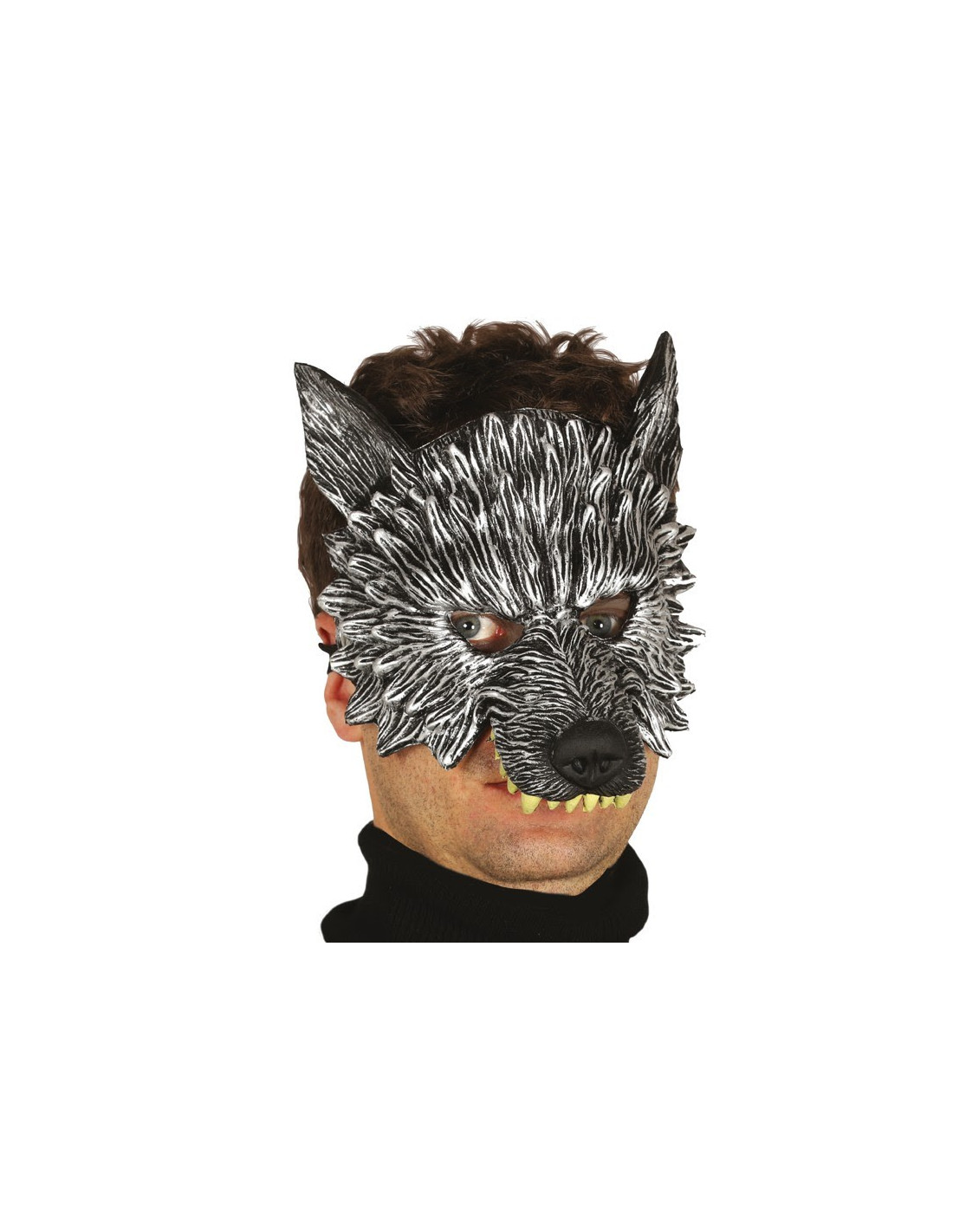 Con está máscara de lobo podrás disfrazarte como este fiero animal en tu fiesta de Carnaval o Halloween. No tapa la cara al completo.