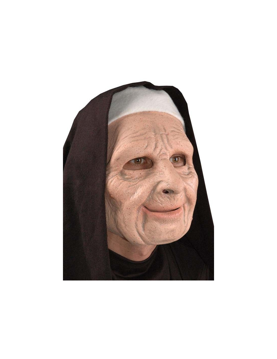 Máscara de monja con la que pasar desapercibida en cualquier situación. Esta misteriosa máscara de látex dispone de gran cantidad de arrugas y líneas de expresión que la hacen muy real. Está inspirada en la máscara que usaban los protagonistas de la película Ciudad de Ladrones.