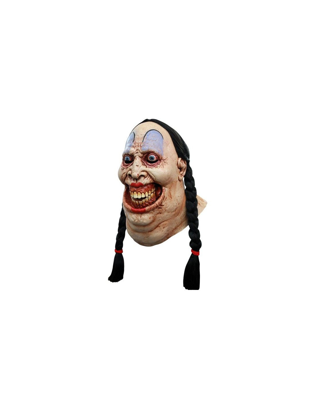 Asusta sin piedad con esta máscara mujer payaso para Halloween. Fabricada en látex de gran calidad. Incluye máscara de látex pelo sintético de color negro, trenzas. Ideal para tu disfraz de payasa diabólica o disfraz payaso asesino. No dejarás a nadie indiferente.