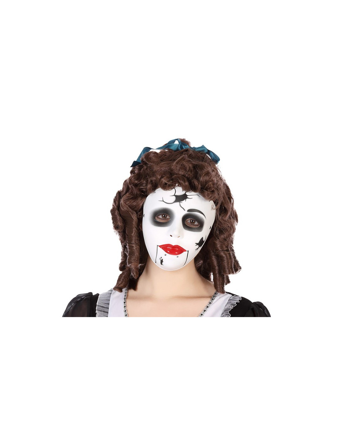 Contiene una máscara blanca pintada a modo de muñeca de porcelana rota. No incluye peluca.