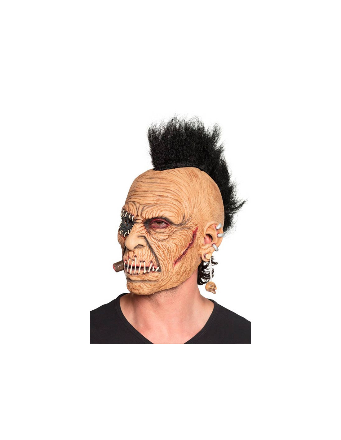 Consta de una máscara Punky de látex con cresta de pelo negro. La máscara tiene muchos detalles como pendientes, una calavera colgando de la oreja, un puro, etc.