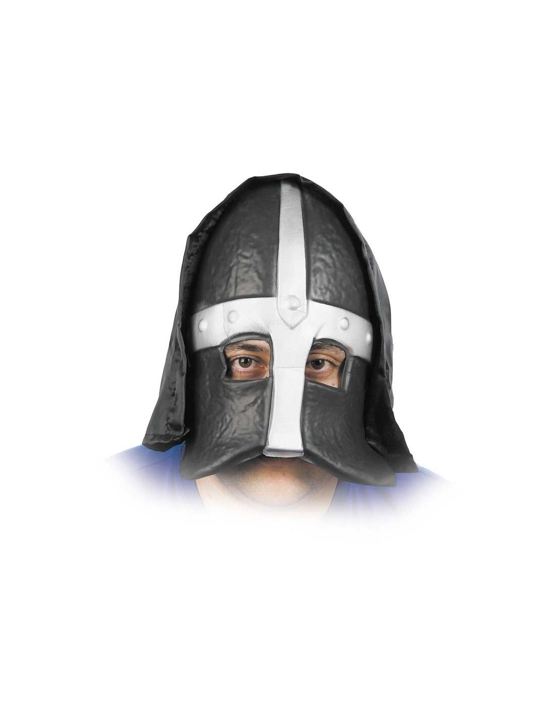 Máscara de verdugo medieval con la que podrás sentenciar a cualquier pecador. Fabricada en goma eva en relieve, es de color negro y cuenta con dos tiras plateadas que forman una cruz en la parte delantera.
