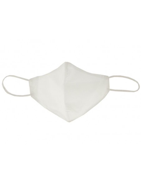 Mascarilla de doble capa Antibacteriana e Hidrófuga con elásticos alrededor de las orejas. Las mascarillas están compuestas por dos capas de tejido certificado 100% Poliéster y 110gr de material Hidrófugo y Antibacteriano. Dicho tejido está dotado de cierta elasticidad, lo que permite un mayor ajuste al rostro.