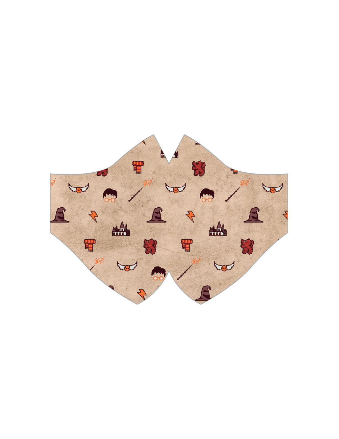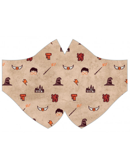 Mascarilla mago marrón inspirada en la famosa saga de películas del joven mago Harry. Tanto peques como mayores lucirán con orgullo la mascarilla de su película preferida.