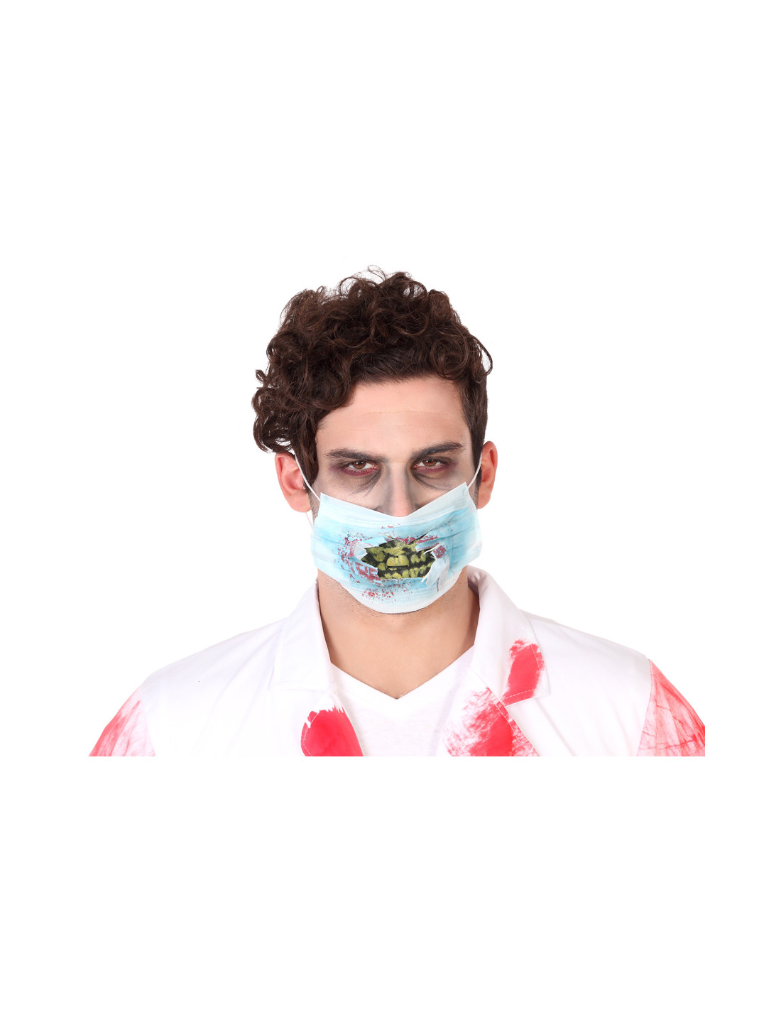 Máscarilla doctor zombie con dientes que incluye una mascarilla con dientes postizos.