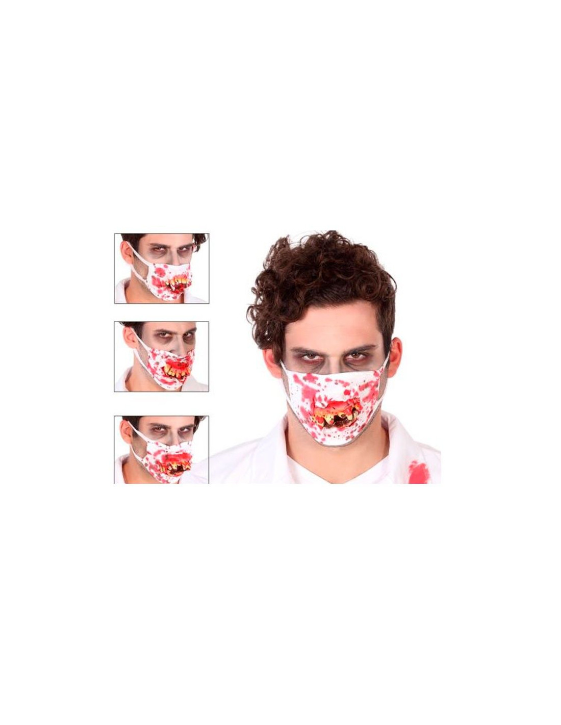 Mascarilla doctor zombie con una desfigurada dentadura de zombies en modelos surtidos. La mascarilla se sujeta con gomas. Se vende por unidad.