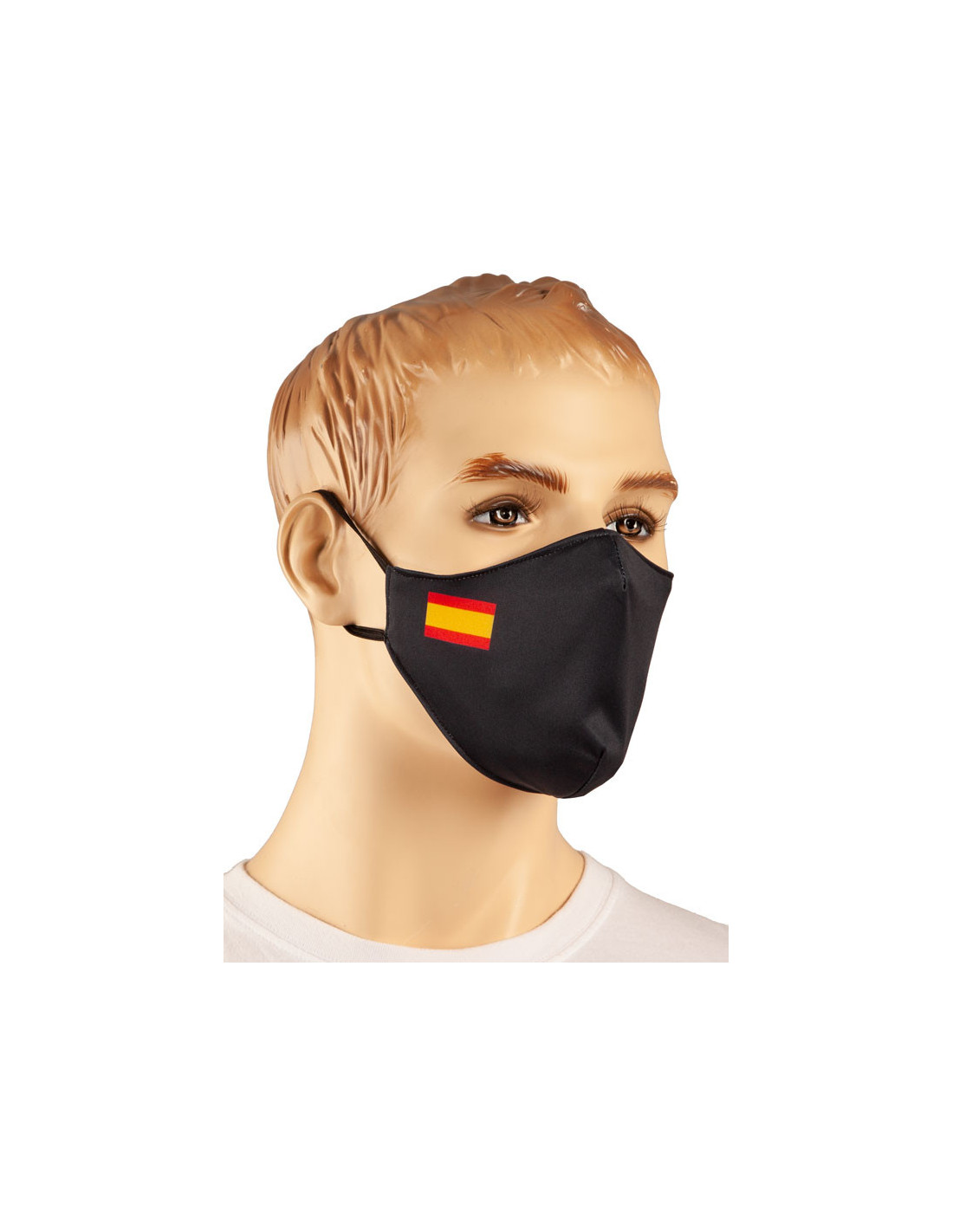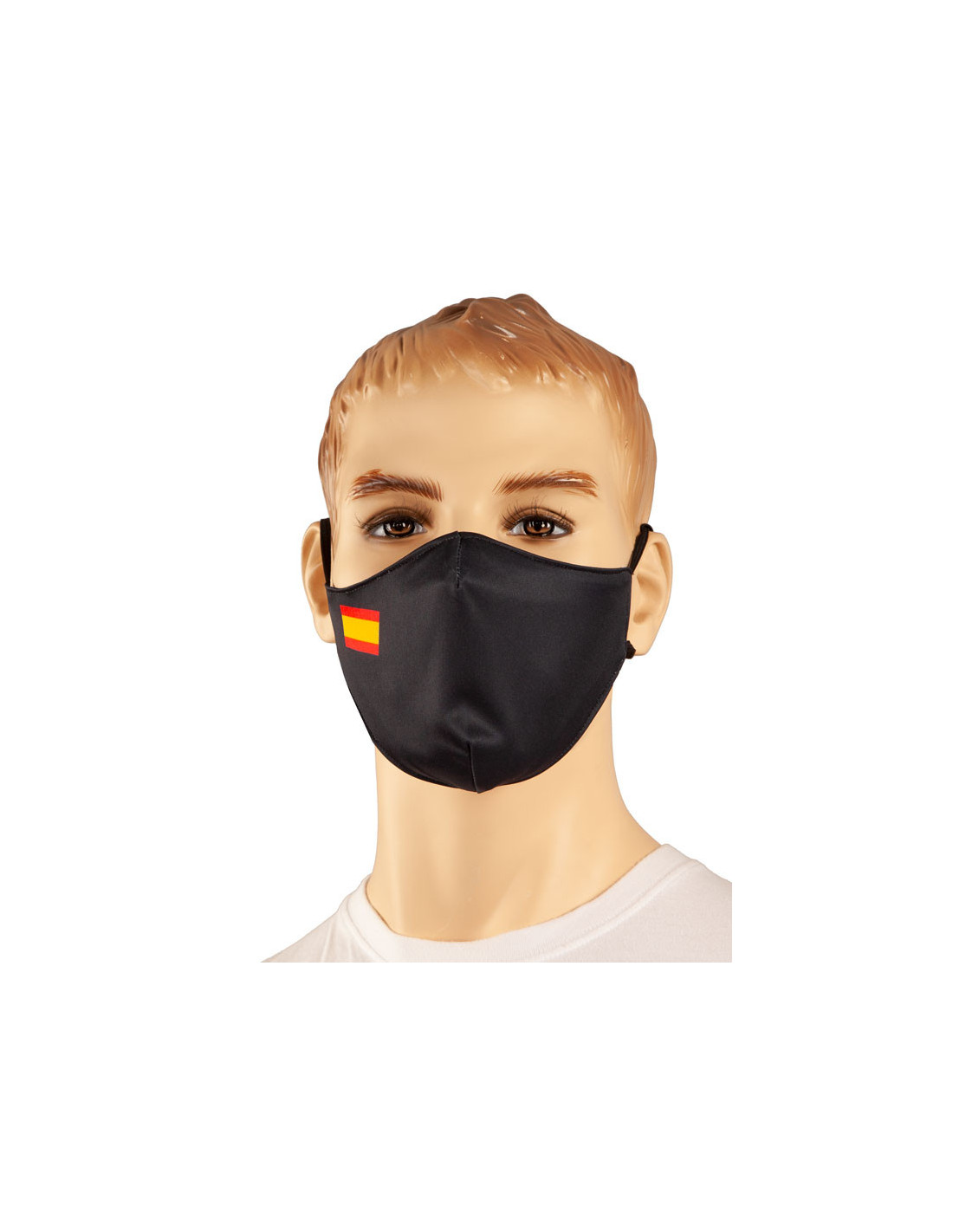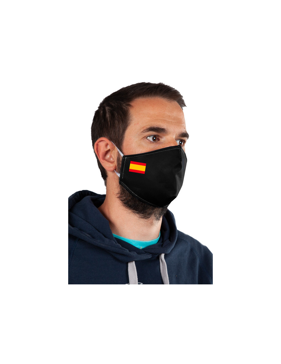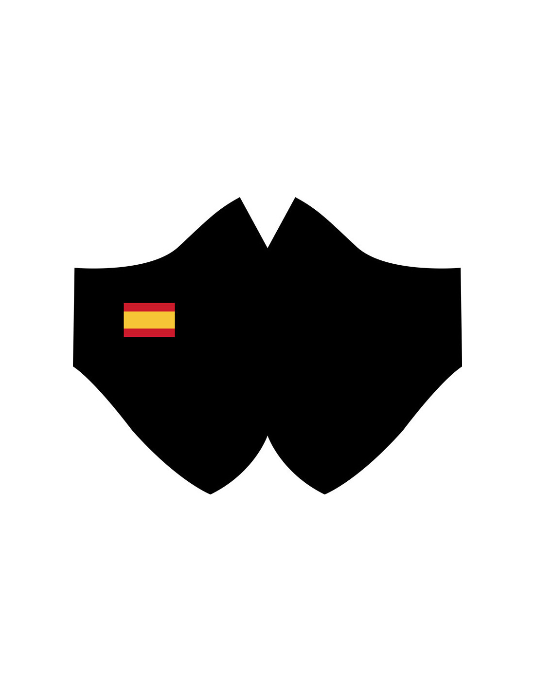 Mascarilla negra con la bandera de España en un lateral para lucir con orgullo los colores de tu país.