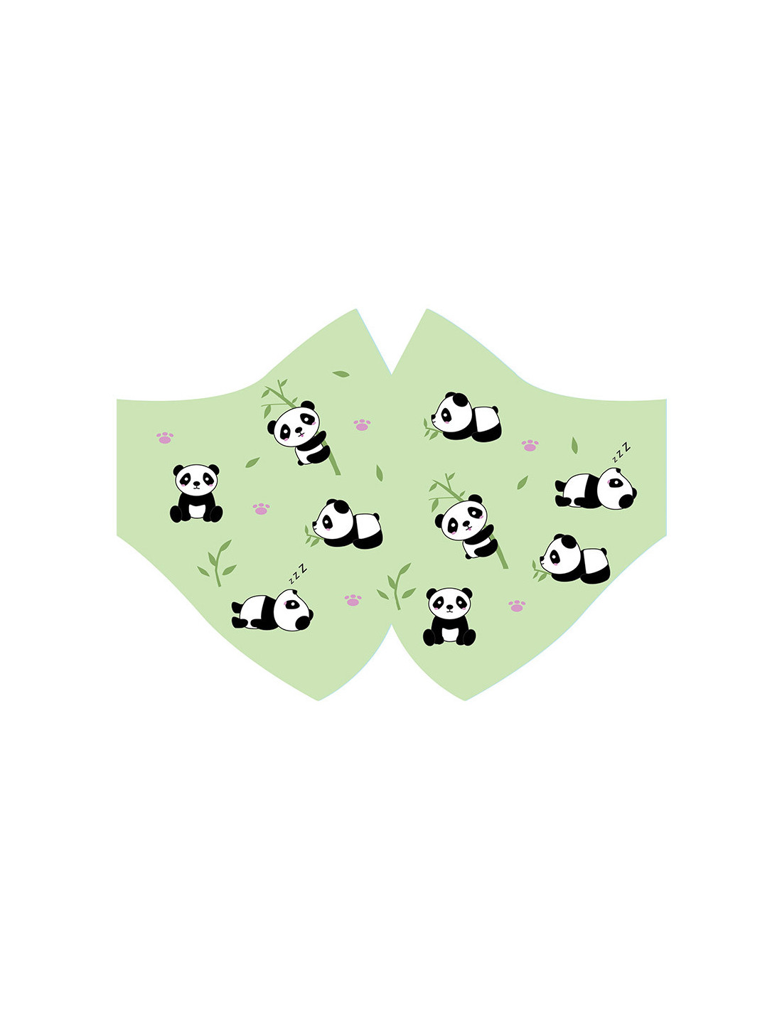 Original mascarilla osos panda para niños y mayores estampada con unos simpáticos ositos panda en diferentes posturas.