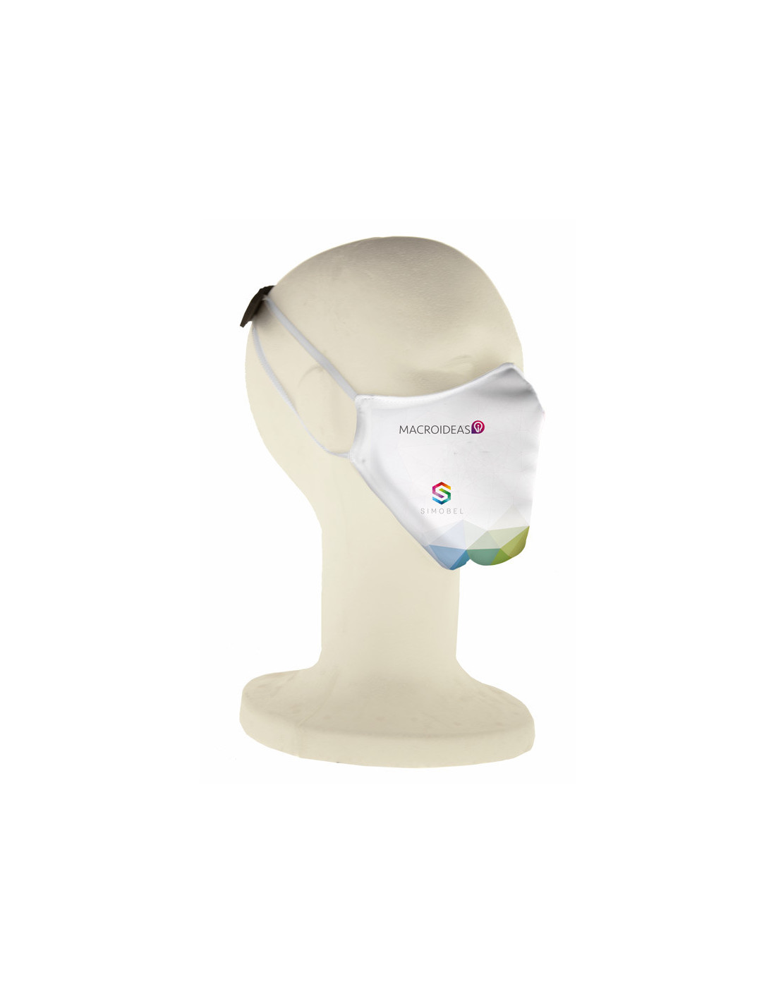 Mascarilla personalizada de tela que consta de dos capas hidrófugas y antibacterianas, y sujeción en las orejas mediante goma elástica. Podemos personalizar y diseñar la mascarilla a tu gusto, a todo color, con texto, imagen o un logo... ¡Cuéntanos tu idea y la haremos realidad!