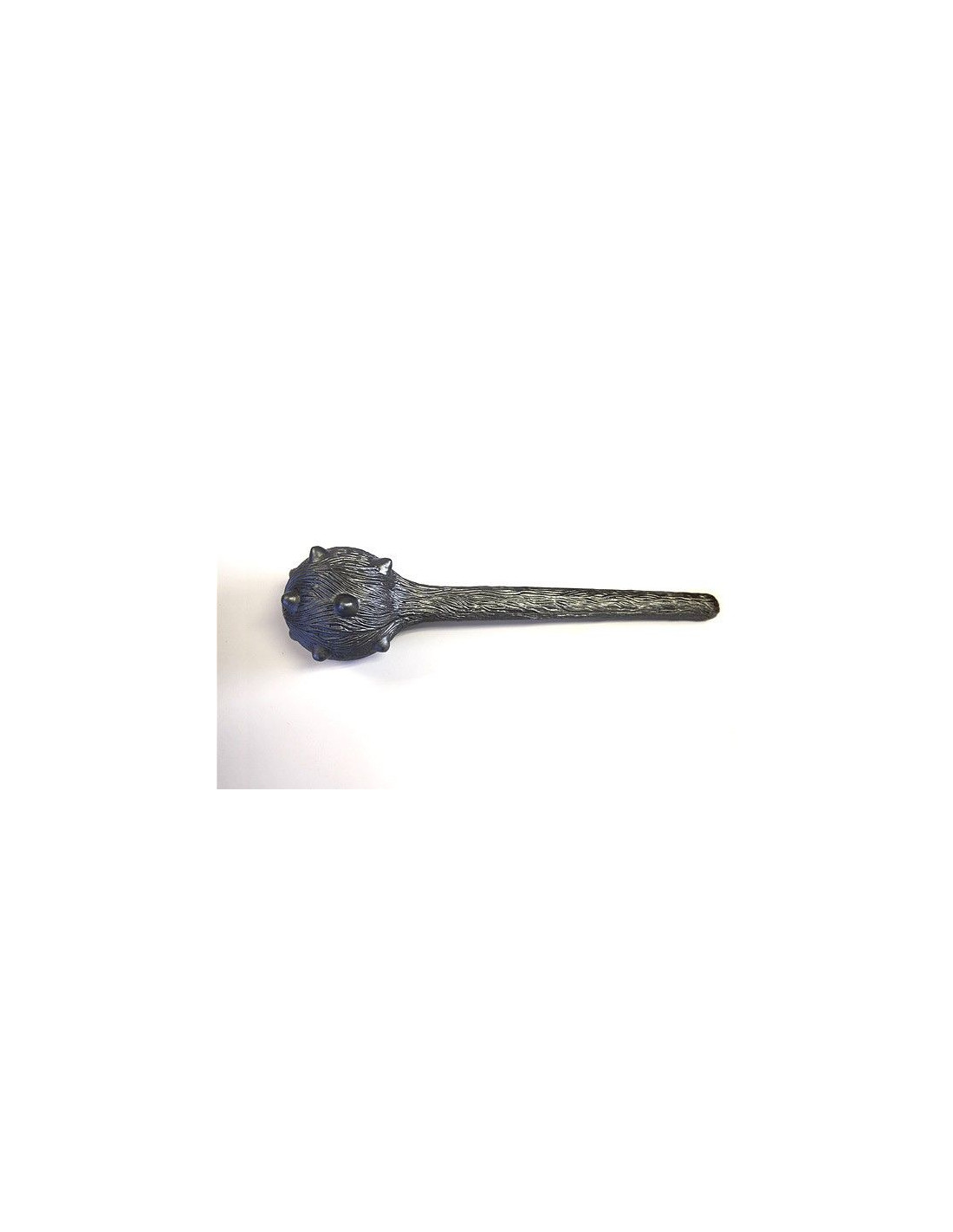 Maza, tipo medieval o romana, fabricada de plástico en color plata envejecida y con unas dimensiones de 29 cm de longitud. Con pinchos simulados en la parte del cabezal. Ideal para niños.