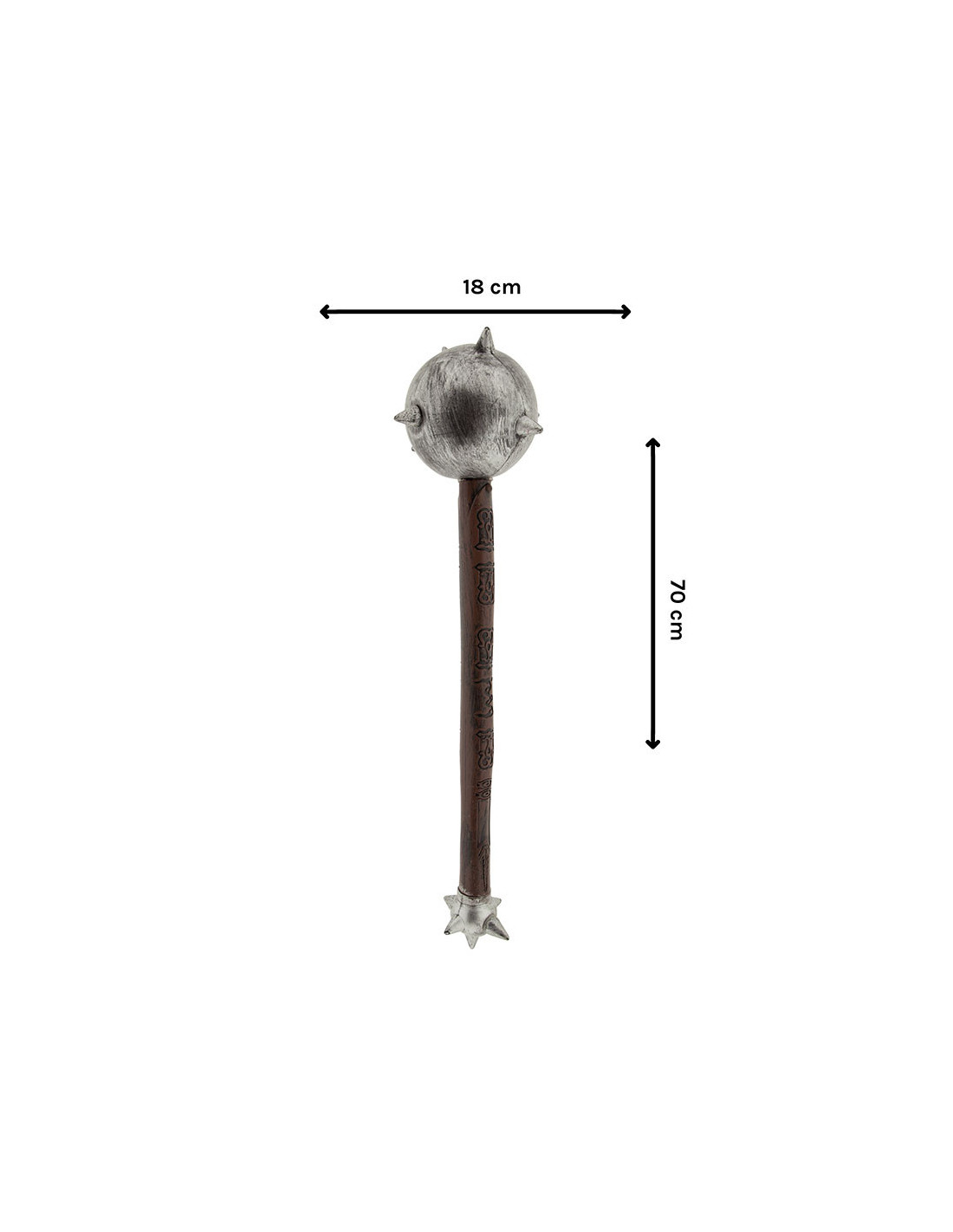 Maza medieval envejecida que incluye un maza de plástico con medidas 70 x 18 cm.