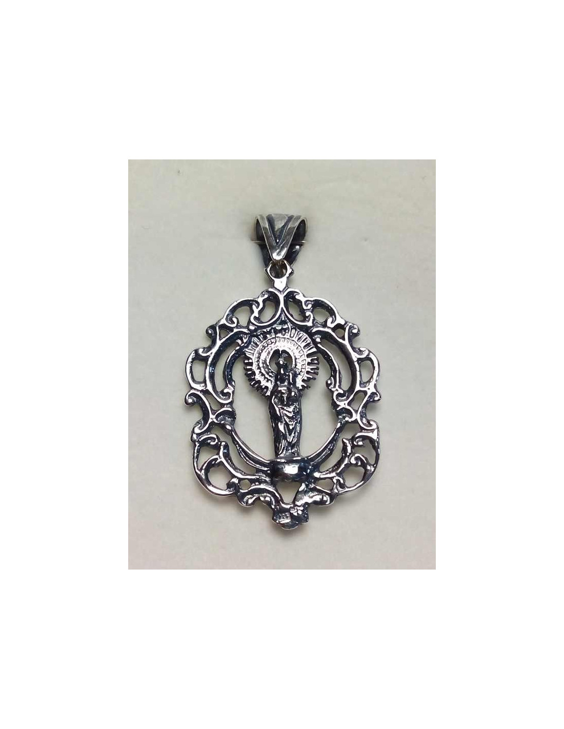 Elegante medalla de la Vírgen del Pilar con un tamaño de 3x3cm.