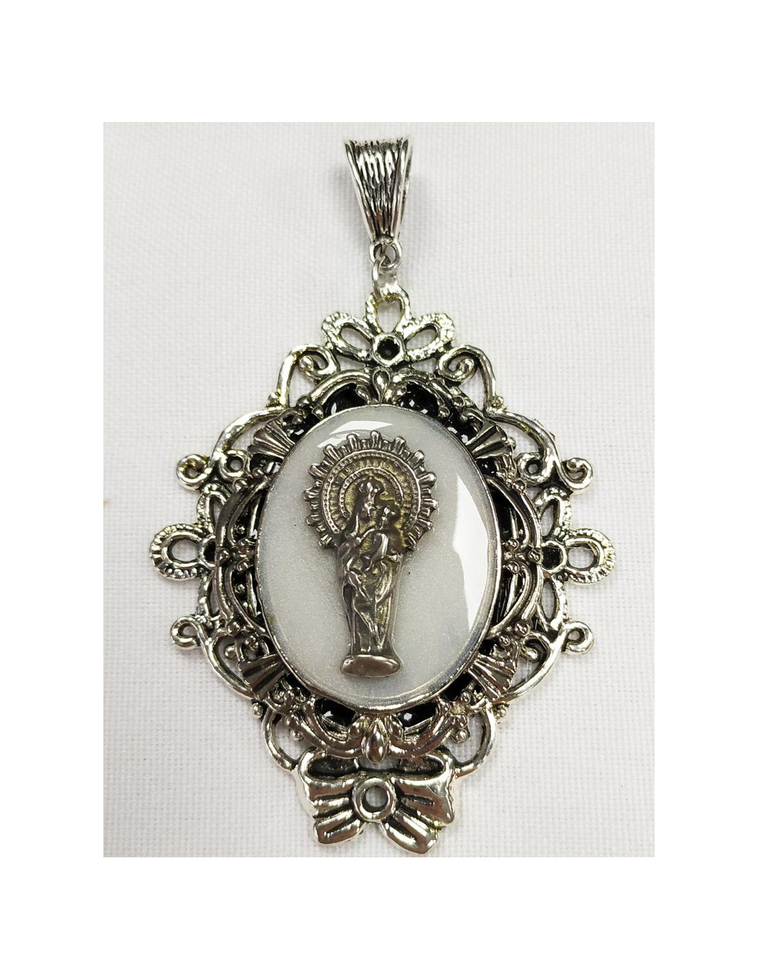 Medalla Vírgen del Pilar 0172 que incluye un colgante de 55x45mm decorada en blanco.