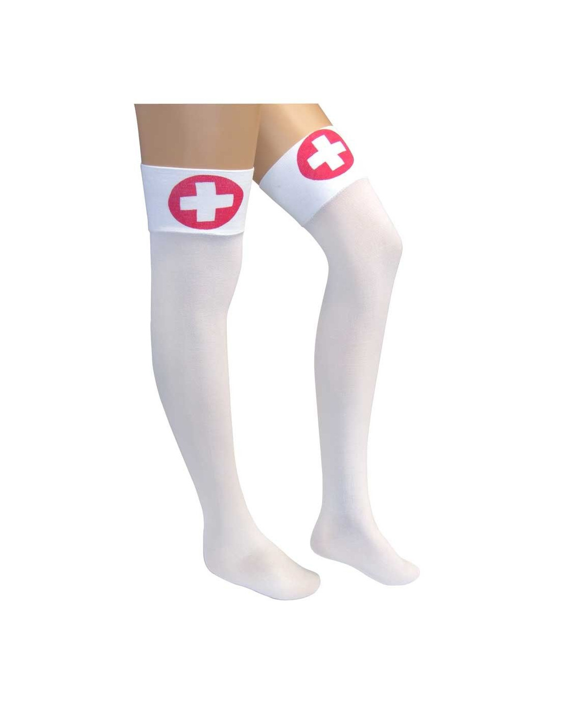 Medias de enfermera para convertirte en la más sexy de la fiesta. Incluye un par de medias de enfermera fabricadas en punto elástico, con una cruz roja en la parte superior.