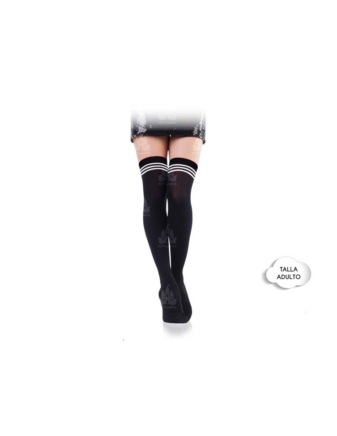Medias estilo colegial 90% poliéster y 10% licra. Talla única (165-180cm o 55-75kg) disponible en 2 colores.
