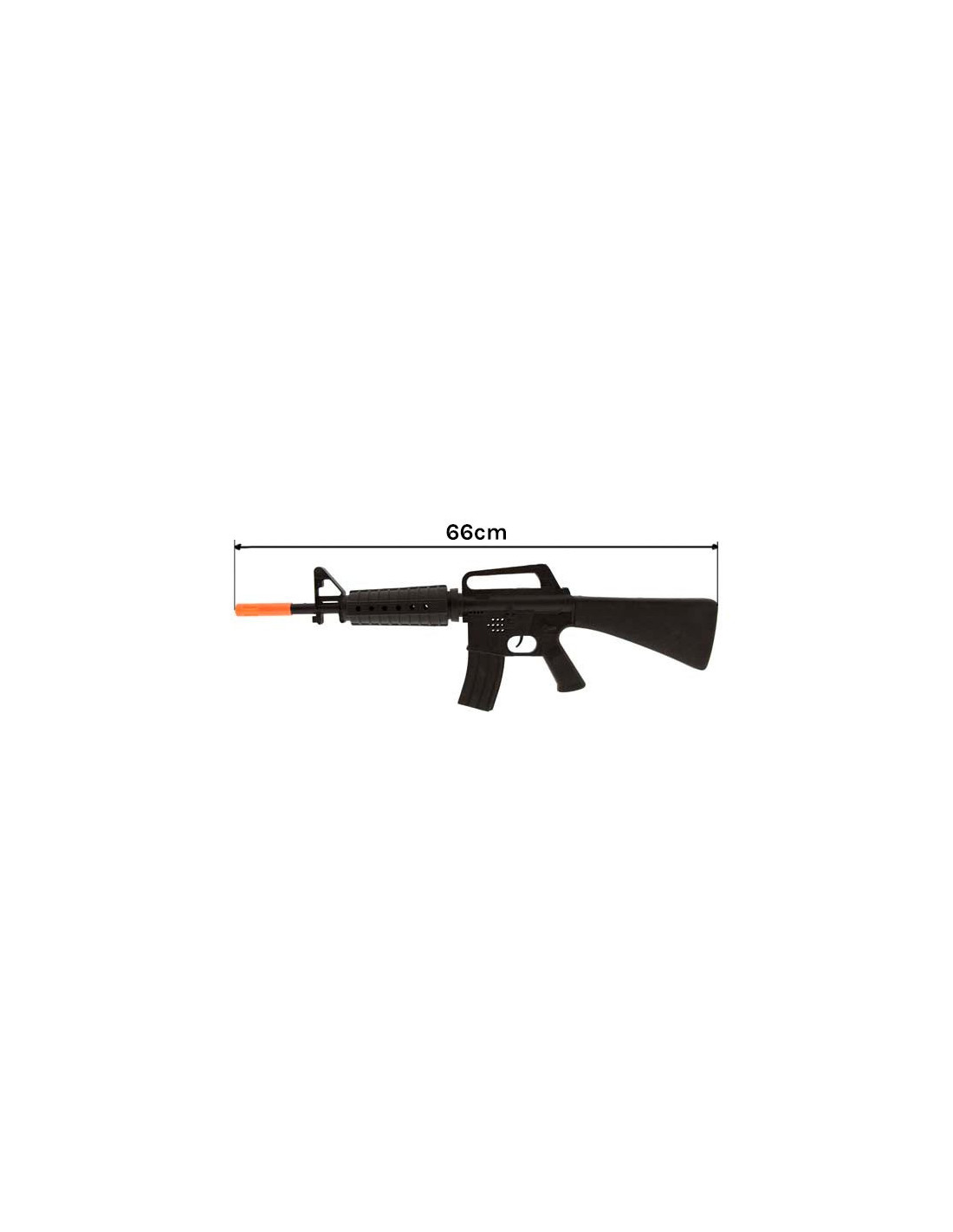Contiene una metralleta de plástico que mide 66x20cm.