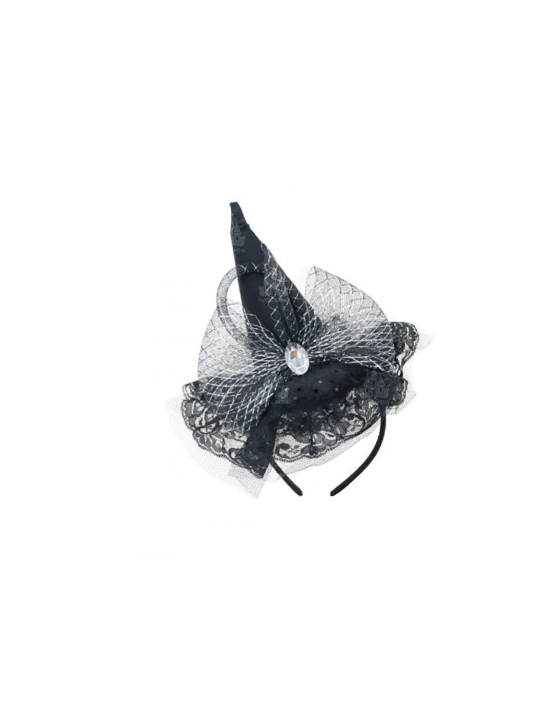 Mini gorrito bruja con lazo que incluye una diadema con gorro y lazo de tul.