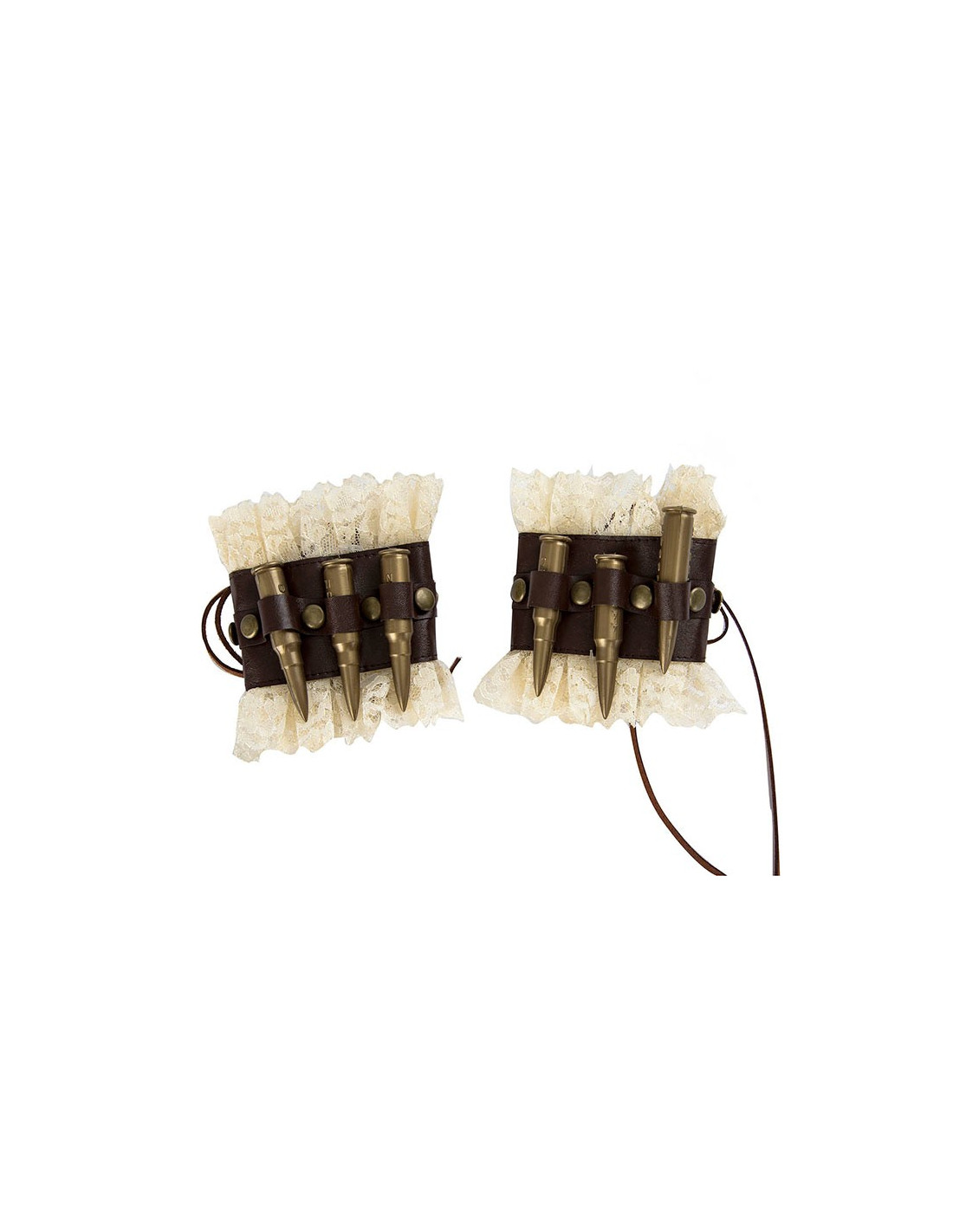 Las muñequeras tienen puntilla blanca y balas de plástico.