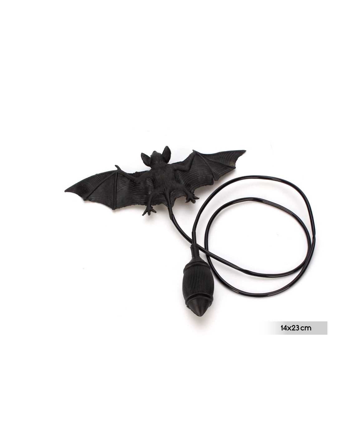 Original murciélago saltarín para decorar tu fiesta de Halloween. Pulsa la pera y el murciélago saltará como si intentara echar a volar.