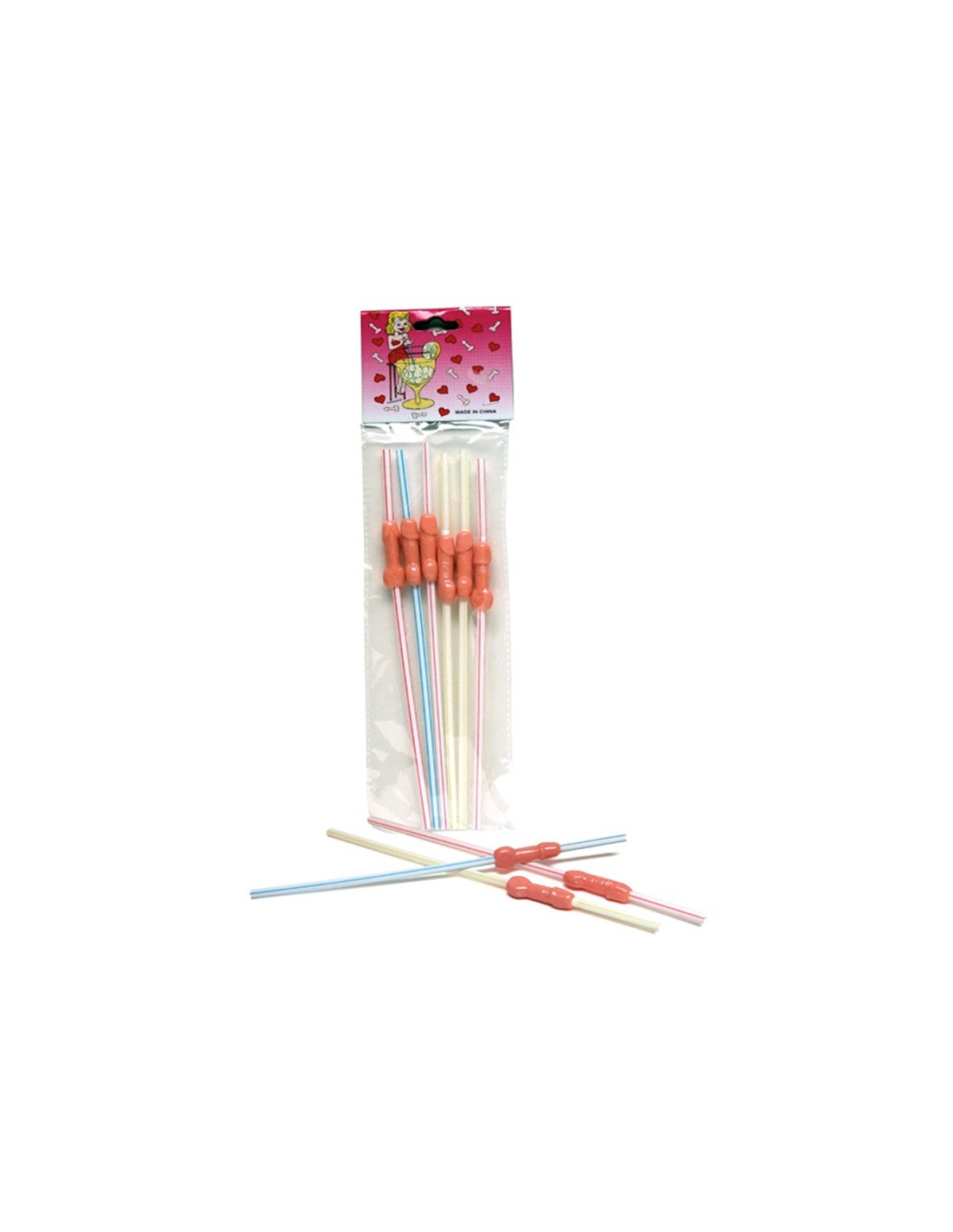Pajita de colores con pene de goma adornándola. Se vende por unidad.