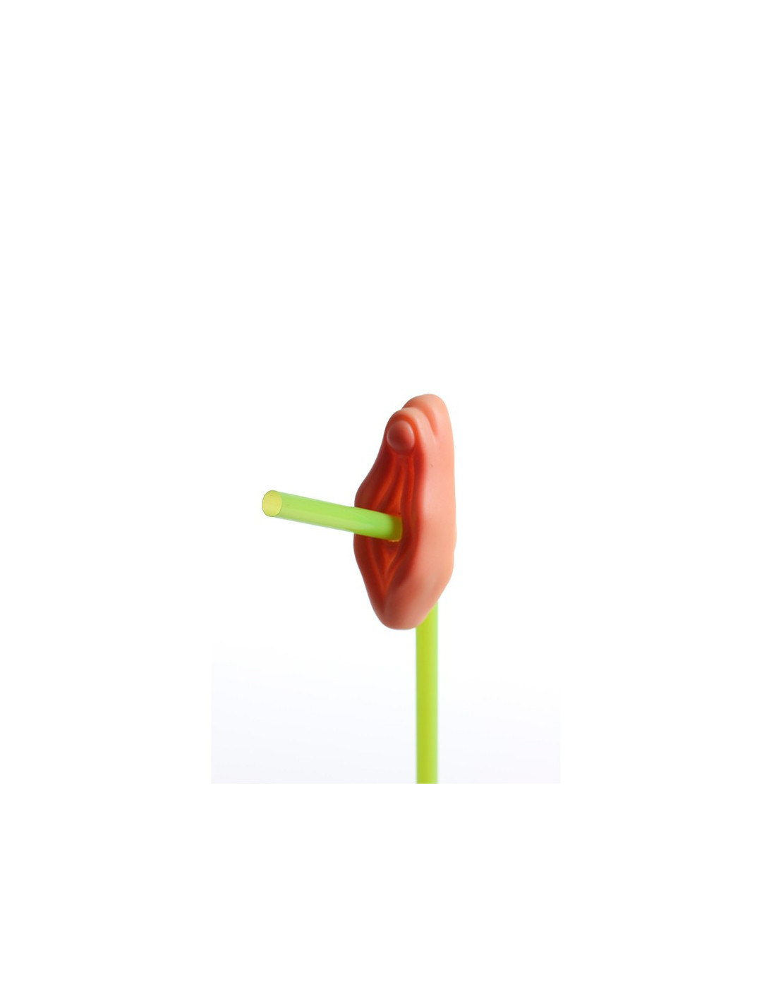 Pajita con forma de chichi que incluye una pajita de color decorada con una vulva de goma. Se vende por unidad.