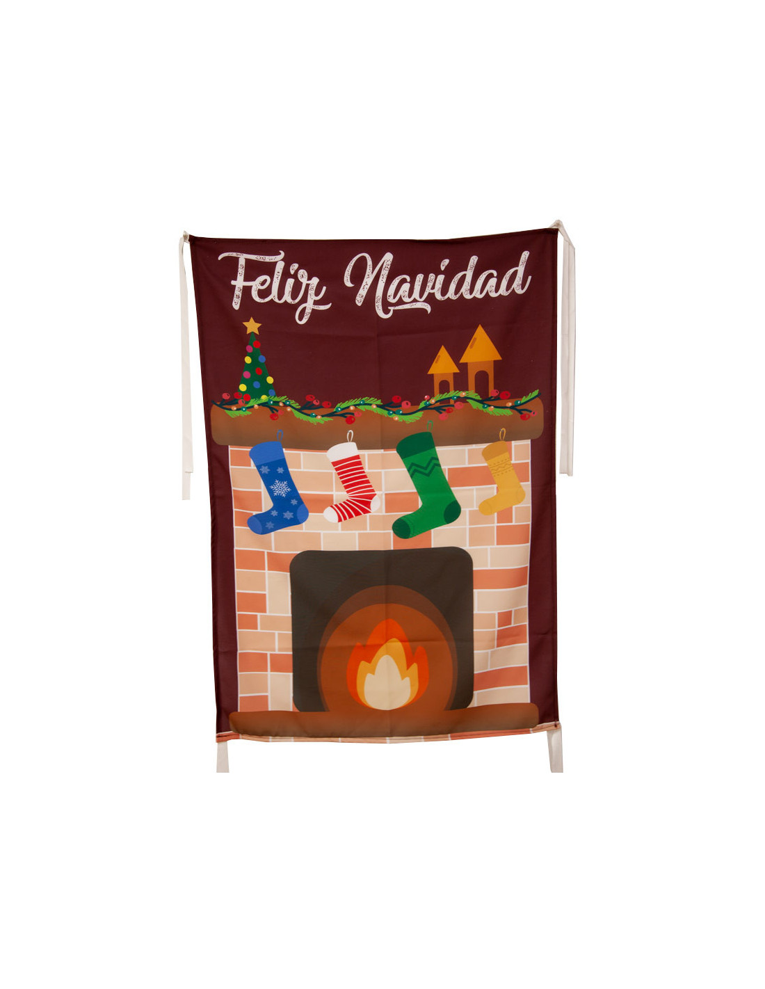 Pancarta chimenea de Navidad que incluye una balconera de tela que mide 100 x 70cm aproximadamente.