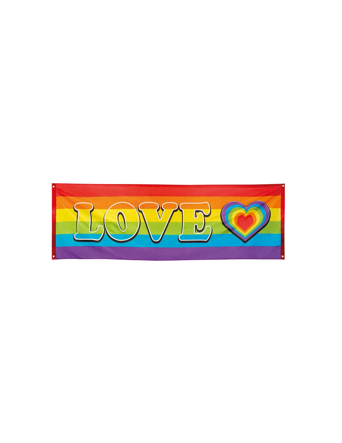 Pancarta Love Arco Iris de poliéster con unas medidas de 74x220cm.