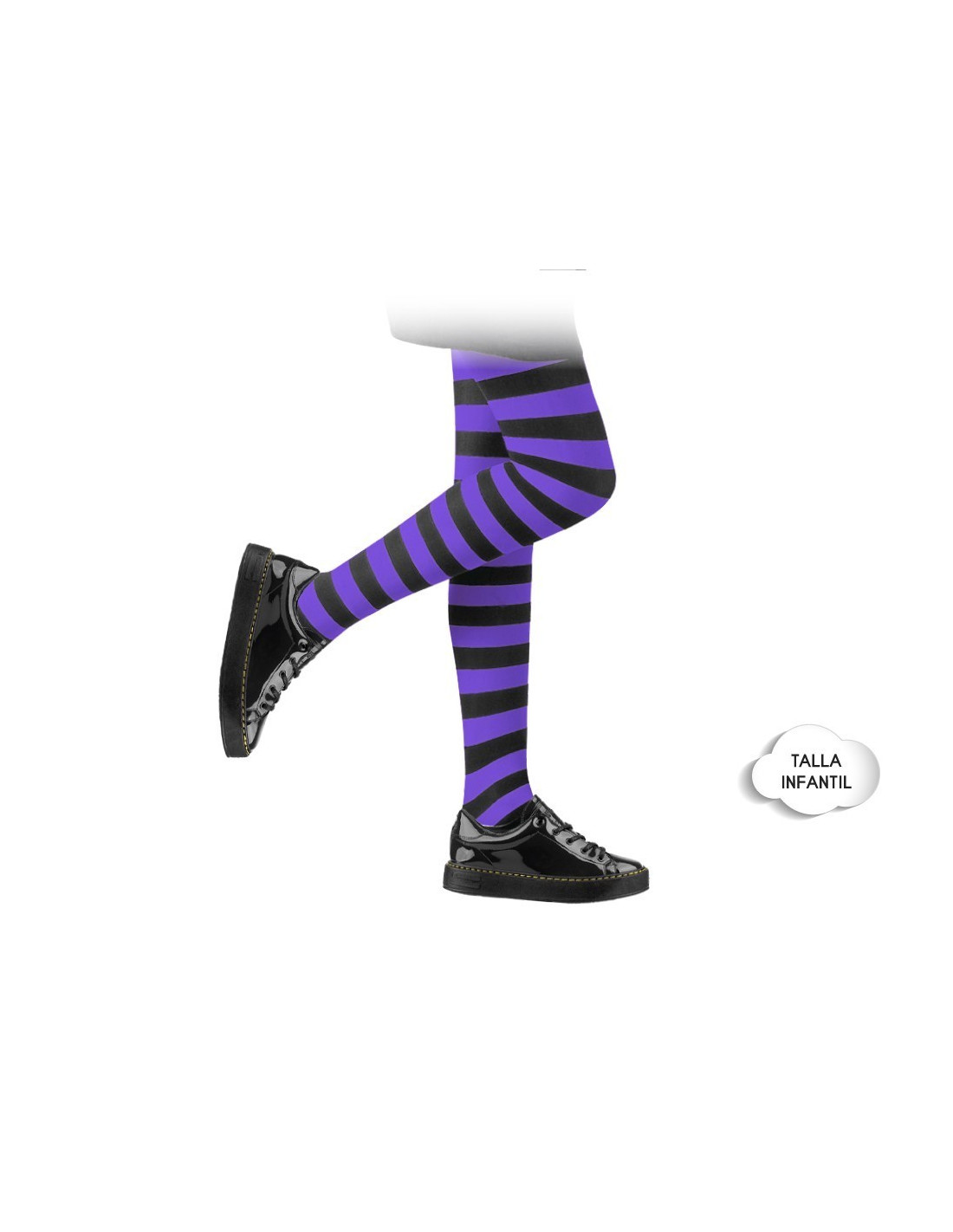 Panty de rayas infantil disponible en dos colores para tu disfraz de bruja en Halloween.