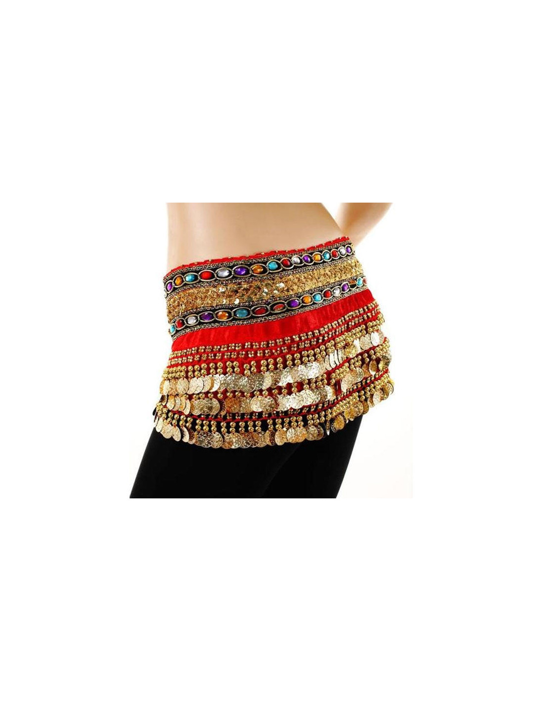 Pañuelo danza del vientre deluxe de con monedas. Colores a elegir: rojo o negro.