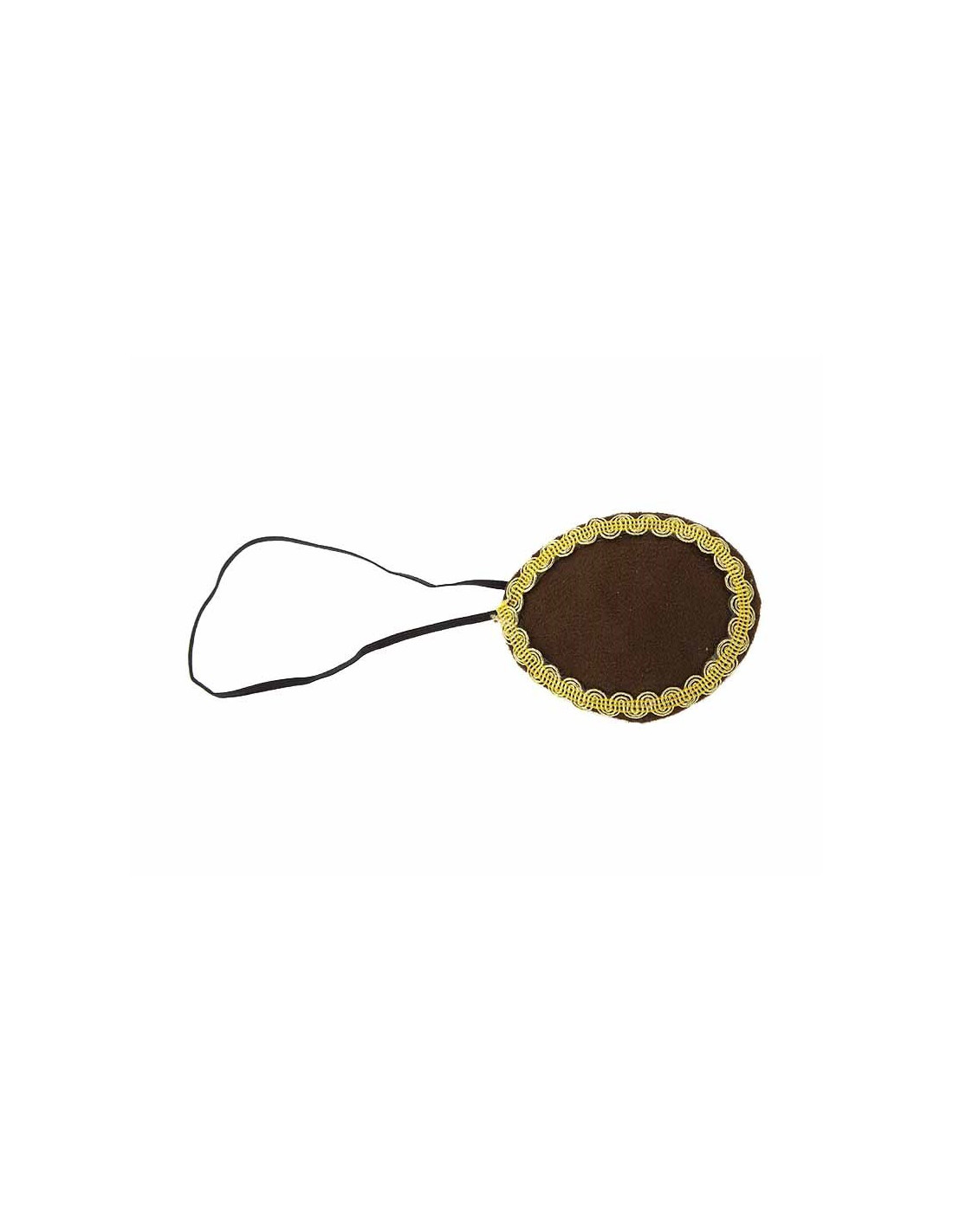 Este parche pirata marrón viene decorado con una pasamanería dorada.