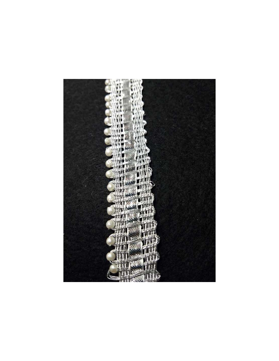 Pasamanería de 15mm de ancho terminada en perlas. Se vende por metros. Unidad mínima de compra 1m.