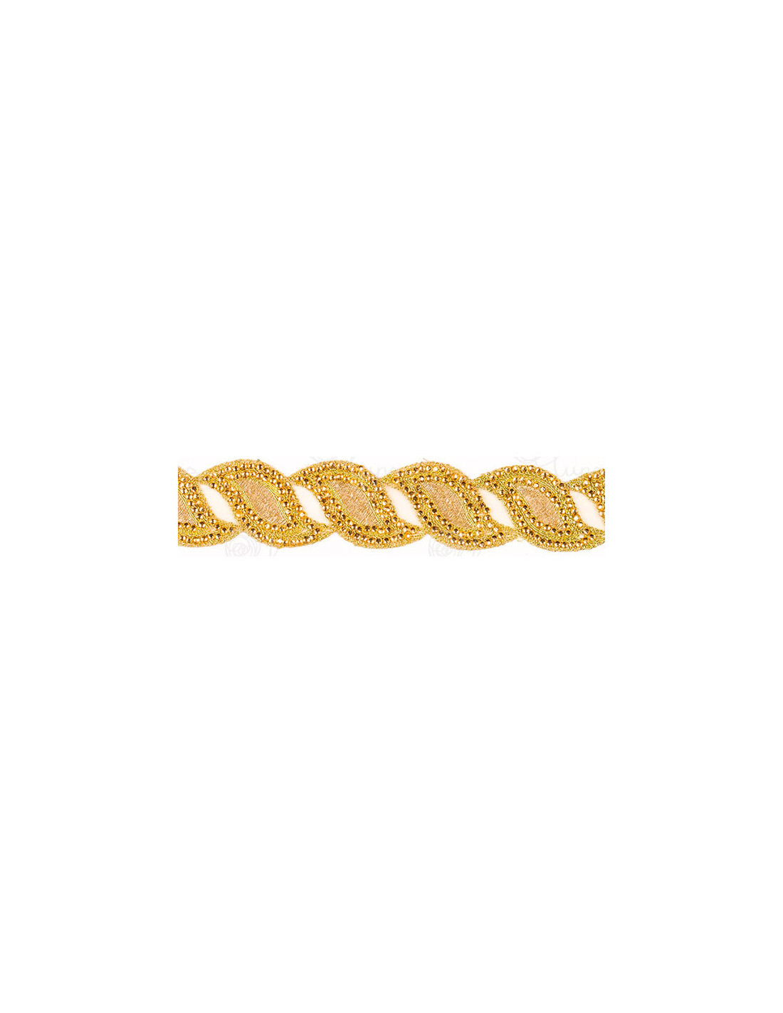 Preciosa pasamanería galón con pedrería disponible en color oro y plata.