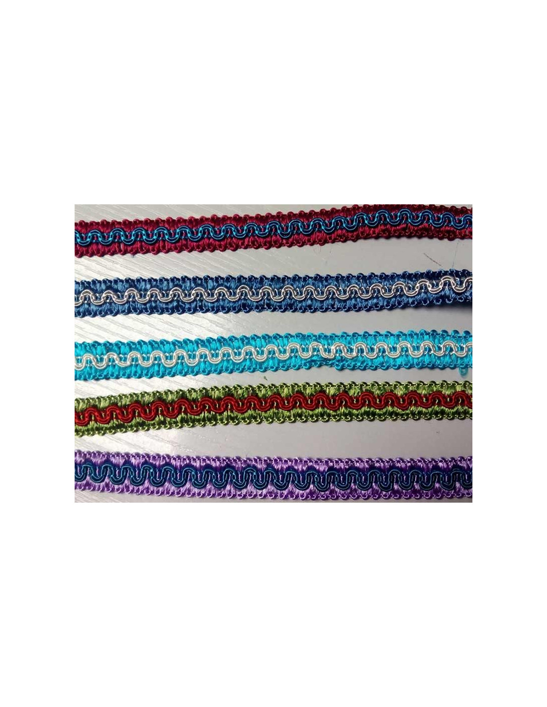 Pasamanería de colores con una onda central en otro color diferente al de la base y de 1,5cm de anchura.