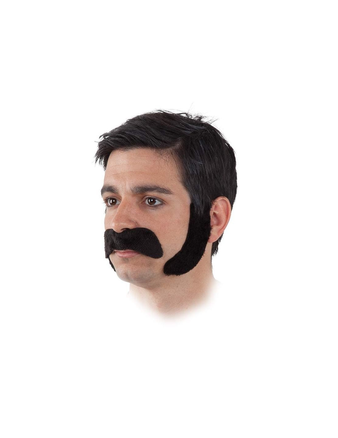 Patillas y mostacho para caracterizar tu disfraz. Las patillas y el bigote son en color negro.