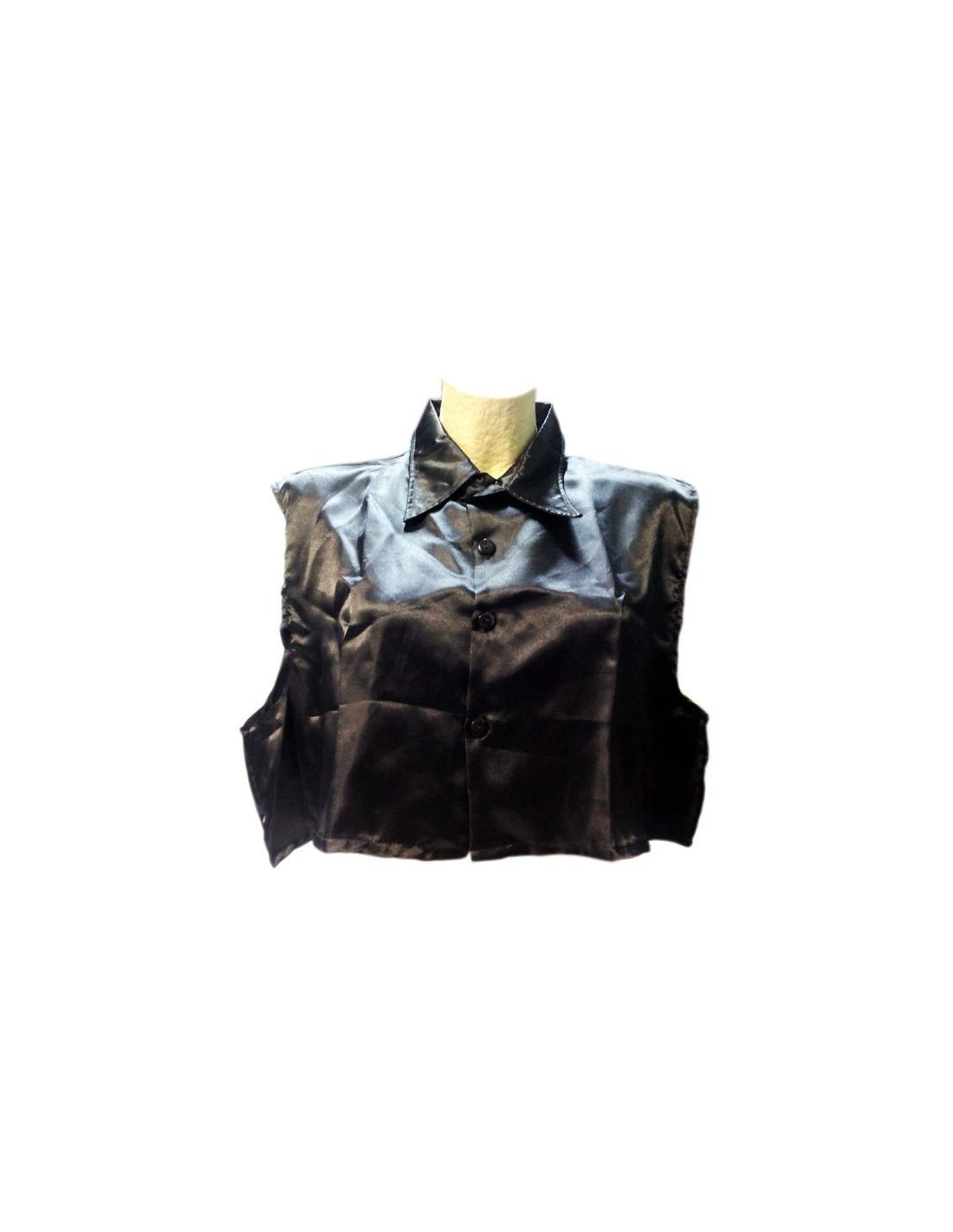 Pechero de camisa negra de tejido de raso negro de ancho hombros 46cm, contorno 124cm y largo total de 43cm.
